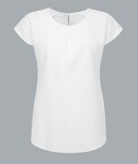 The Molly round neck work blouse, featuring the same textured, drapey fabric as its sister style Grace. Molly's gentle neckline, inverted pleat, scooped neckline & relaxed fit give graceful panache & wide appeal..